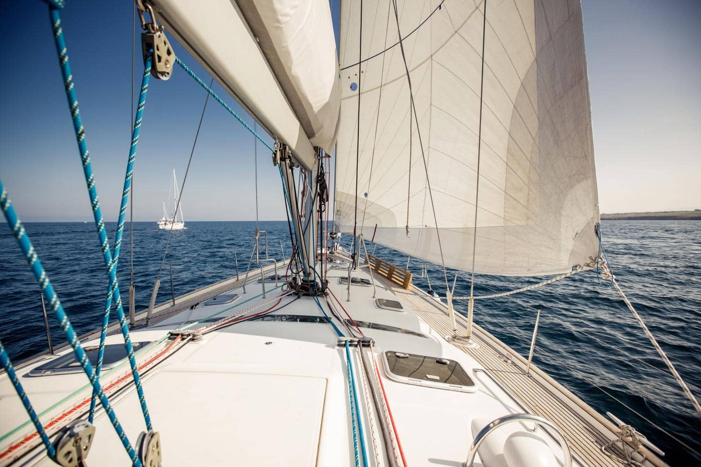 Bådforsikring - lystbåd med bådforsikring på det åbne hav i solskin