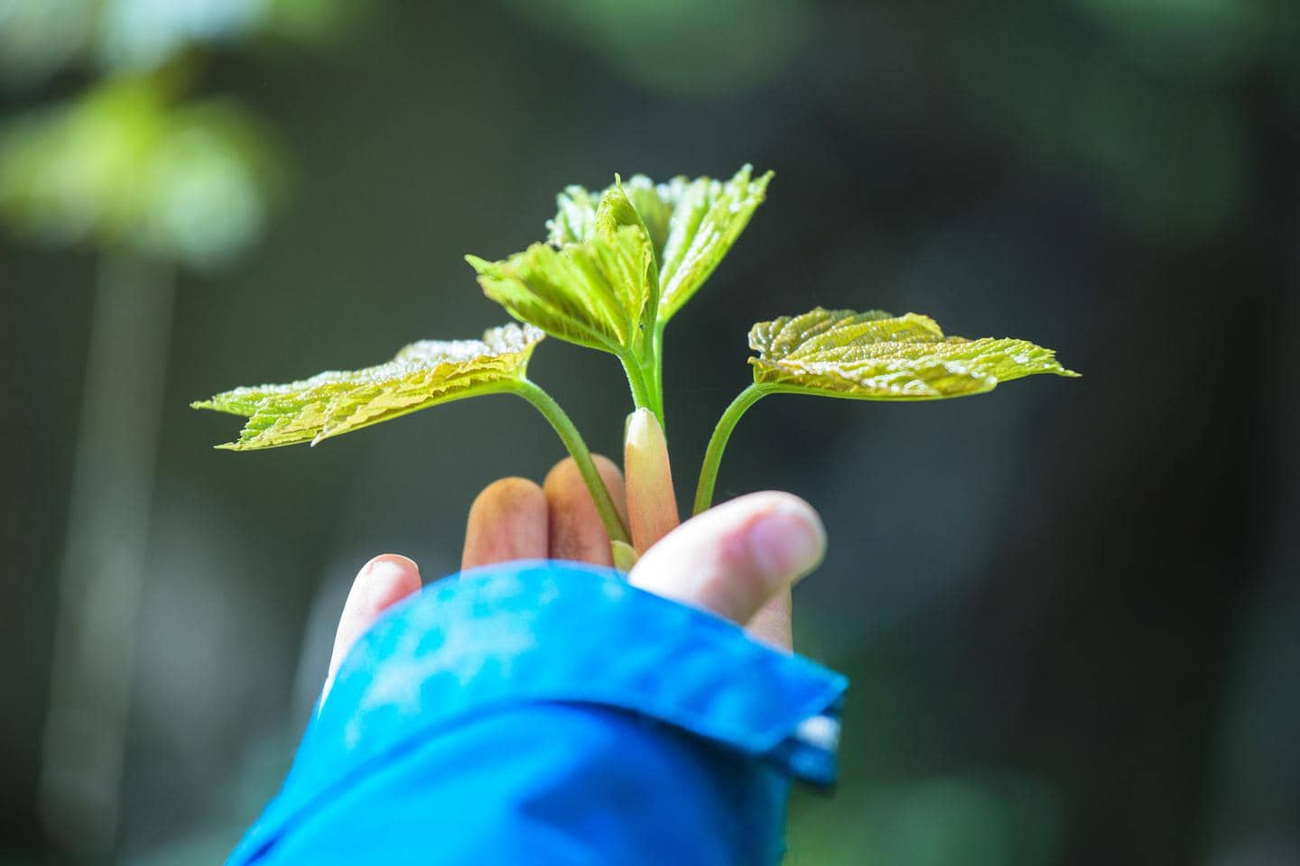 Miljøforsikring, plante der holdes i en hånd, pas på naturen
