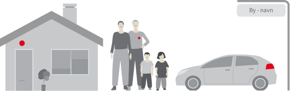 Du bor til leje i et hus i Vestjylland. I er to voksne og to børn, og I har en bil.